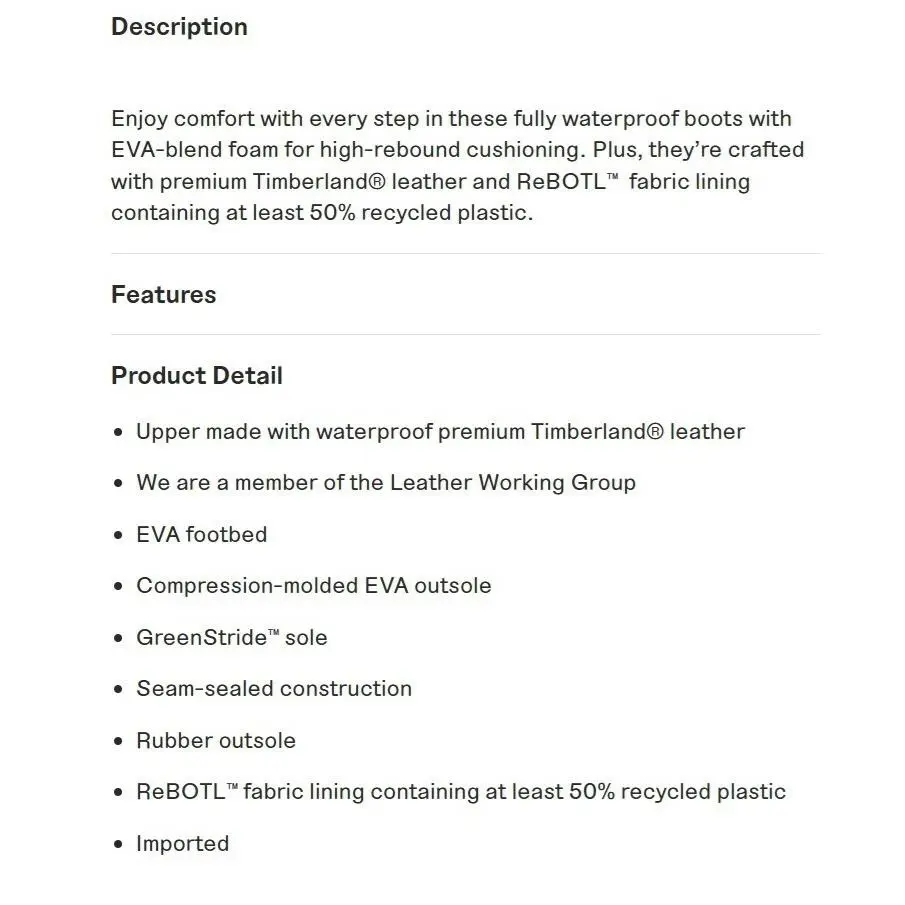 | Upper Material: | waterproof premium TimberlandĀ® leather |