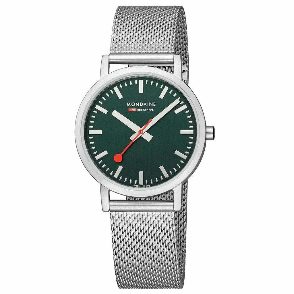 Mondaine watches represent the best in Swiss quality and design. Drawing on the greatest icons of the minimalist Swiss aesthetic, Mondaine watches for men and women include the famous Official Swiss Railways collection and the Helvetica collection.