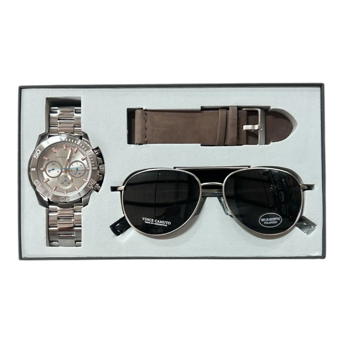 Men`s VC/1147GYSVST Chronograph Watch - Band - Sunglasses Set B12 by Vince Camuto