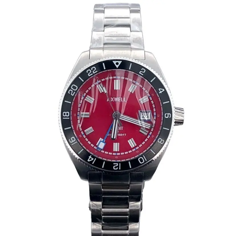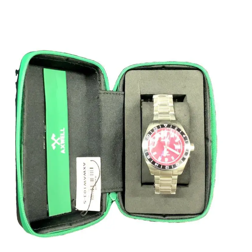 Ascent Stainless Steel Red Dial Gmt Men s Watch A1G001717 by Axwell