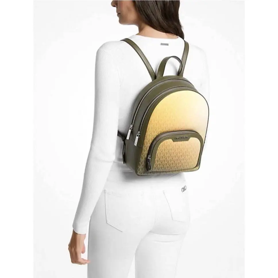 Michael Kors Jaycee Large Vanilla Shoulder Backpack Bookbag - Handle/Strap: Brown, Hardware: Gold, Exterior: Vanilla