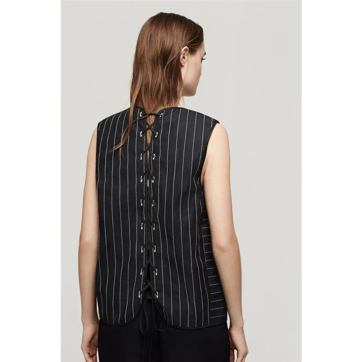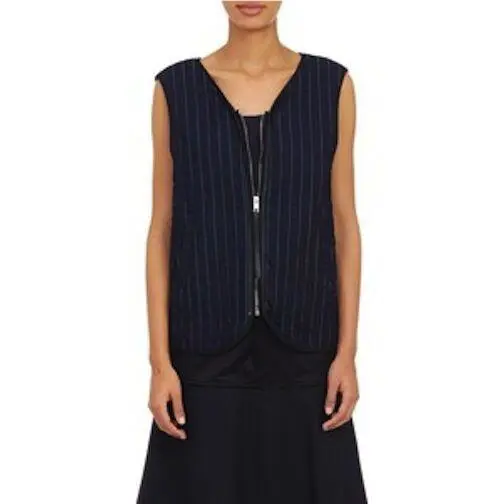 Rag Bone Women`s Quilted Lace-up Back Weaver Vest Indigo Striped XS by Rag & Bone