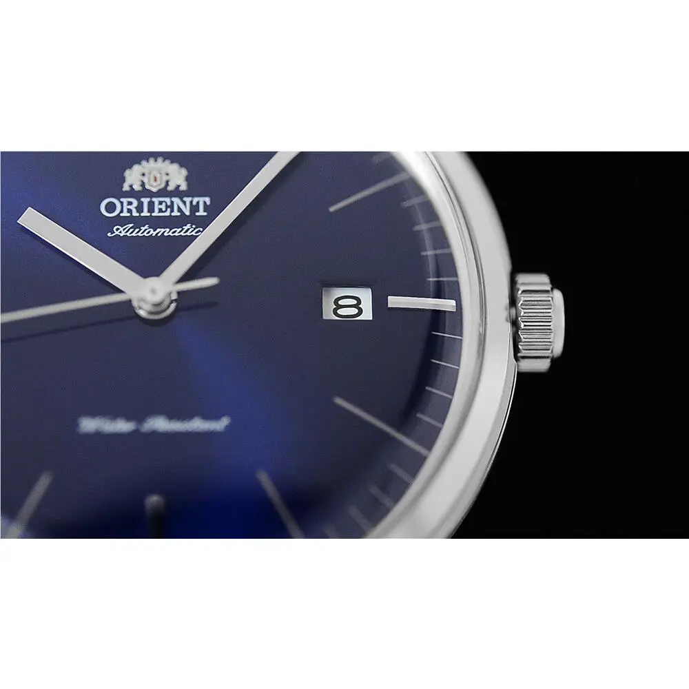 Orient Men`s Bambino Version 7 Blue Dial Automatic 38mm Watch RA-AC0M10L - Dial: Blue, Band: Silver-Tone, Bezel: Silver-Tone